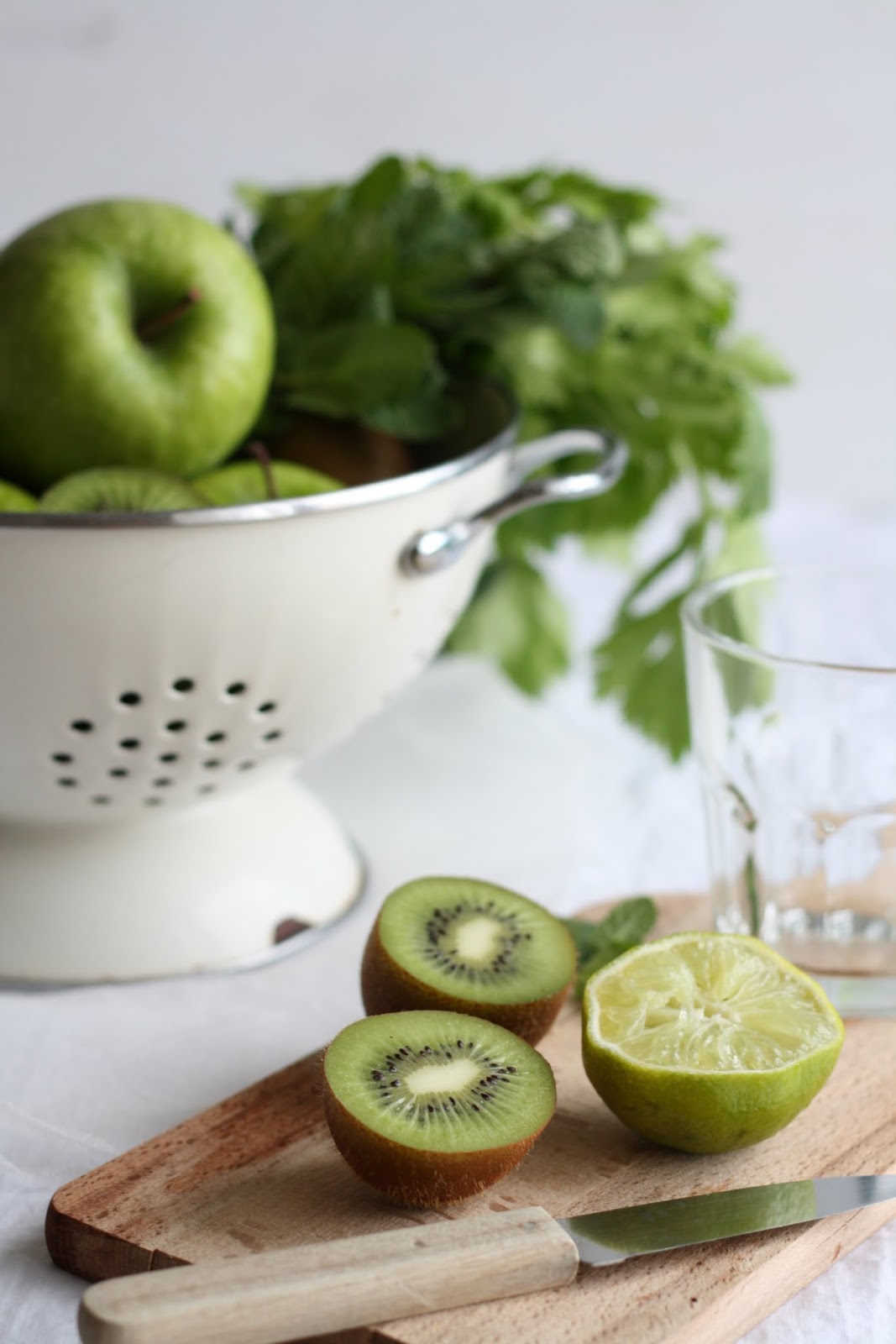 Aujourd’hui, je vous propose un smoothie, un jus de fruits et des légumes frais mixés et onctueux. Un green smoothie, du vert et seulement du vert ! Ces derniers temps les effets bénéfiques de ces boissons envahissent le web, tout le monde en va de sa green détox.