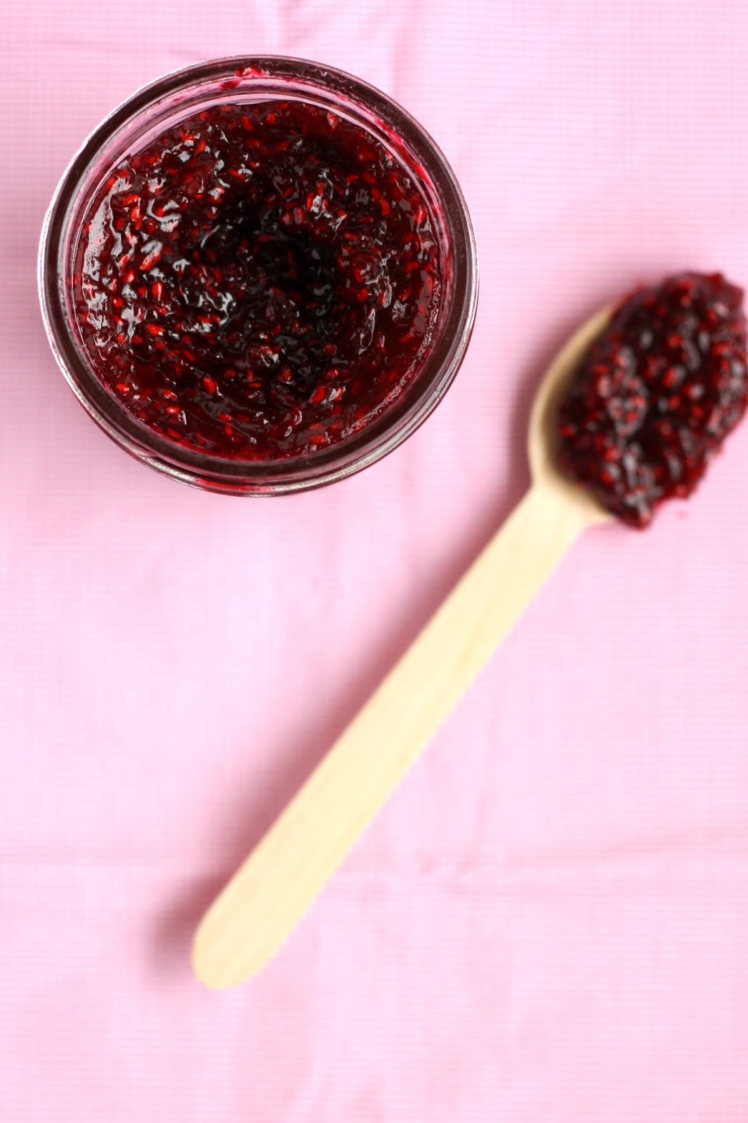 Ayant besoin de ma petite touche sucrée le matin, j’ai alors fouillé dans mon congélateur, pris le restant de framboises surgelées, feuilleté mon livre Confitures, collection Petits Plats chez Marabout. Je me suis mise aux fourneaux et en moins d’une heure, j’avais mon pot de confiture maison trônant fièrement sur mon petit plan de travail. J’ai divisé en 4 la recette originale pour l’adapter à ma quantité de framboises et j’ai ajouté de la vanille en plus (une de mes manies de réunionnaise !). Instant confession : quelques minutes d’inattention, un poil trop cuite, elle reste néanmoins très gourmande.