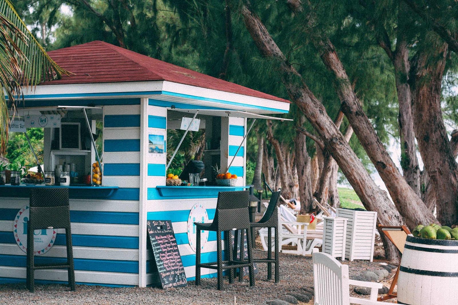 12h arrive, on se rend au restaurant « la Plage », face à l’océan, pour moi ça sera une salade césar avec des queues de langouste et Jb, des côtes d’agneau grillées et une salade de palmiste frais. Délice ! On aurait pu aussi se servir au carry’s bar et manger des plats chauds créoles, cuits au feu de bois, mais étant dans ma famille pendant les vacances c’était notre cuisine quotidienne, on avait envie de changer. Le tout accompagné de cocktails au fruits frais avec et sans alcool et pour finir un trio de glace aux parfums exotiques : goyavier, tangor, vanille.