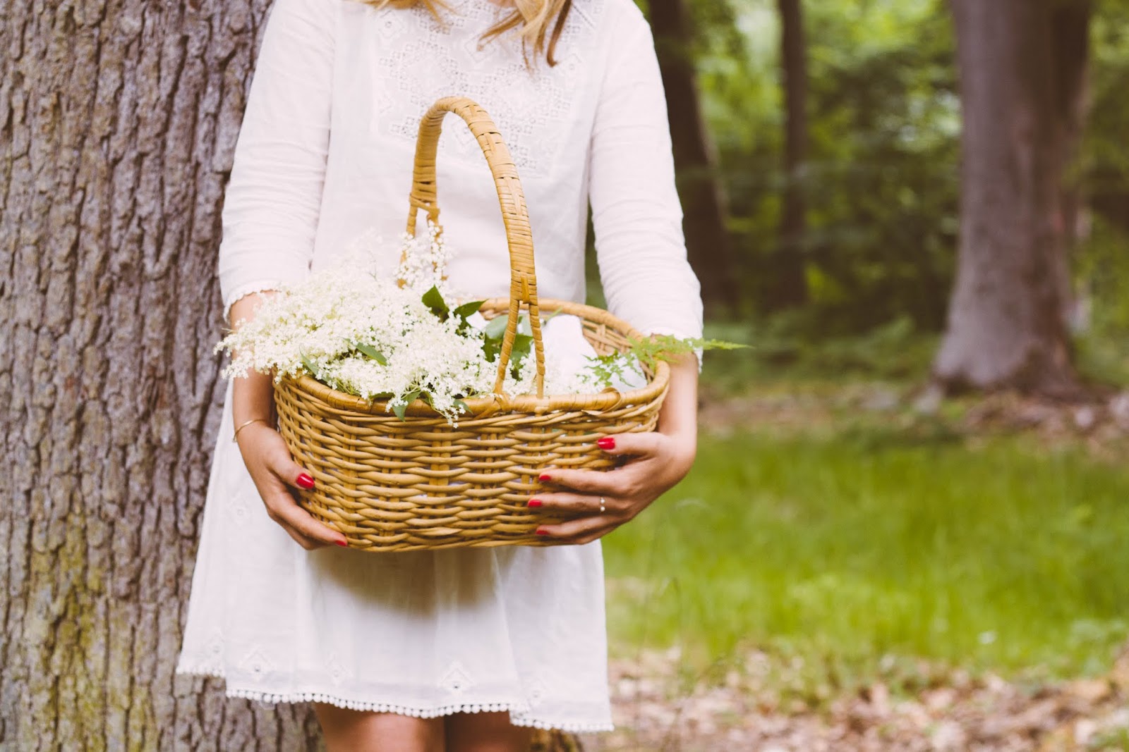 Ce week-end, mes amis, Amelia & Paul sont venus à la maison, on a profité de la forêt de Rambouillet pour cueillir des fleurs de Sureau. Ils avaient envie de goûter le sirop et des beignets de fleurs de sureau cuisinés la semaine dernière grâce aux fleurs que Tiphaine m’avait apporté. Cette cueillette a été l’occasion d’embarquer l’appareil photo et de laisser la magie s’opérer. Les Nymphéas avaient apporté avec eux quelques accessoires, un canotier surmonté de jolies fleurs Sia, un panier en osier, une bouteille vintage, une planche en bouleau brut de Knieja-wood et les cheveux d’ange d’Amélia, le tout a permis de créer une ambiance bucolique comme je les aime. Une belle équipe, on a passé un beau moment et il nous a fait beaucoup de bien. Je vous dévoile mes recettes plus bas.