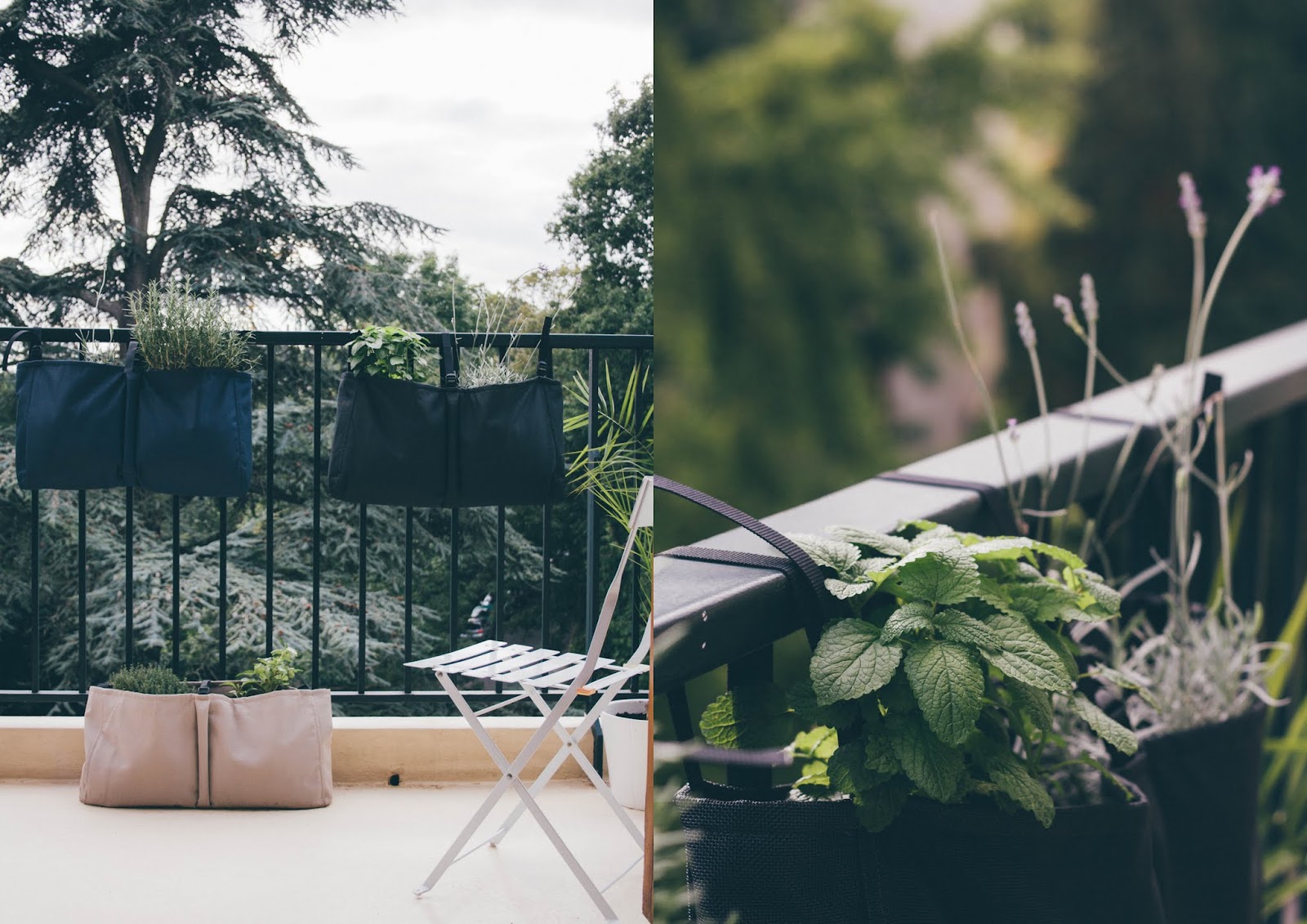 Que c'est joli, je suis déjà Vanessa sur IG mais je ne savais pas qu'elle avait un blog du coup je vais y aller faire un tour, c'est apaisant ces plantes sur ta terrasse et quoi de mieux quand tu cuisines que d'avoir les aromates à proximité et le système des sacs accrochés à ton balcon je trouve ça moderne et joli, on est loin des pots à l'ancienne! j'ai hâte de voir de prochaines photos avec une évolution, belle soirée
