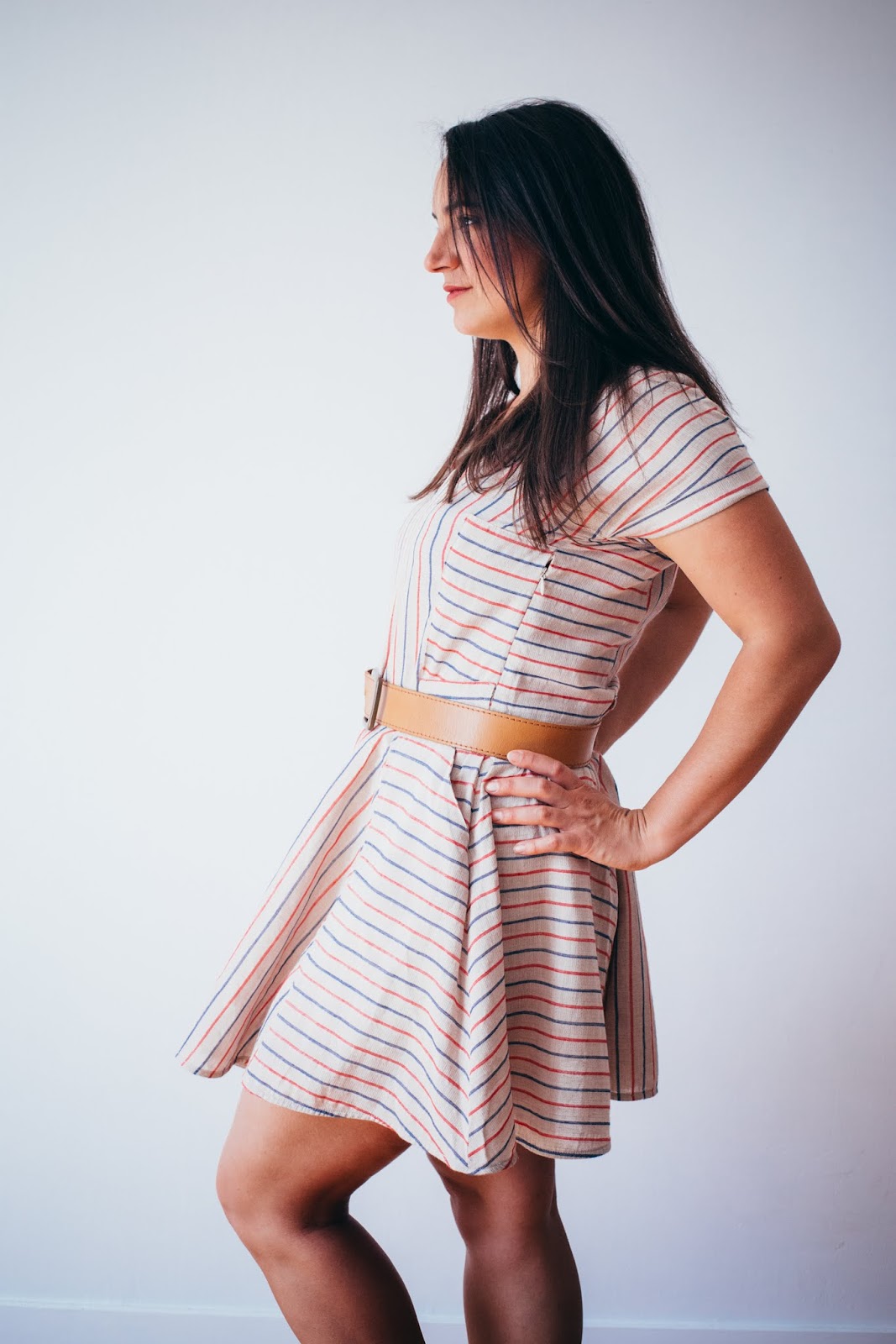 J'ai adoré la robe beige à fines rayures et elle te va à ravir en plus 🙂