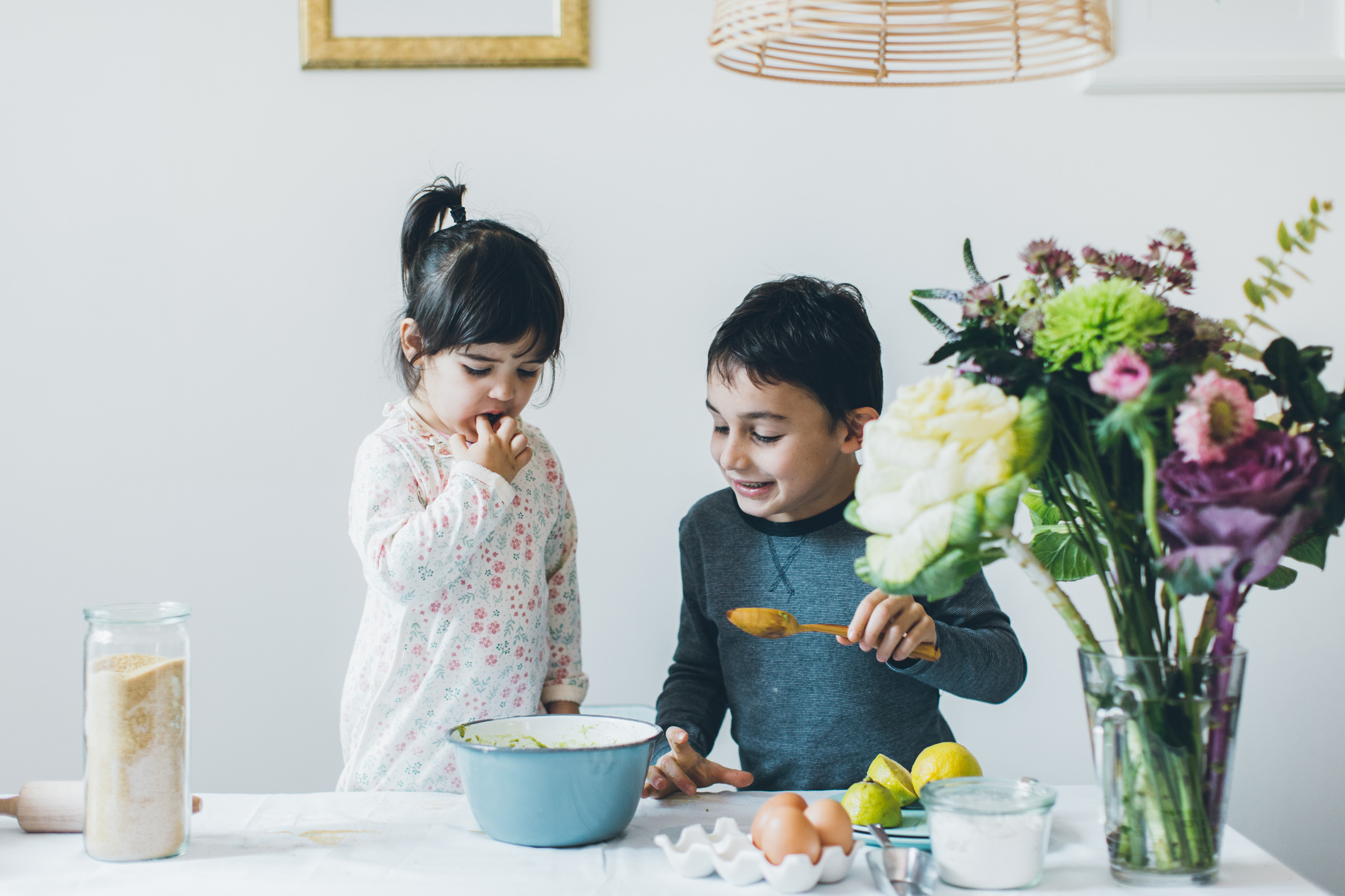 De même pour les produits permettant la préparation des petits gâteaux pour la semaine, farine, huile, sucre, on alterne les farines, on choisi des sucres plus sains, sirop d’agave, rapadura, sucre de canne non raffiné, cela permet aux enfants de découvrir une multitude de gouts et textures et bien meilleure pour la santé.